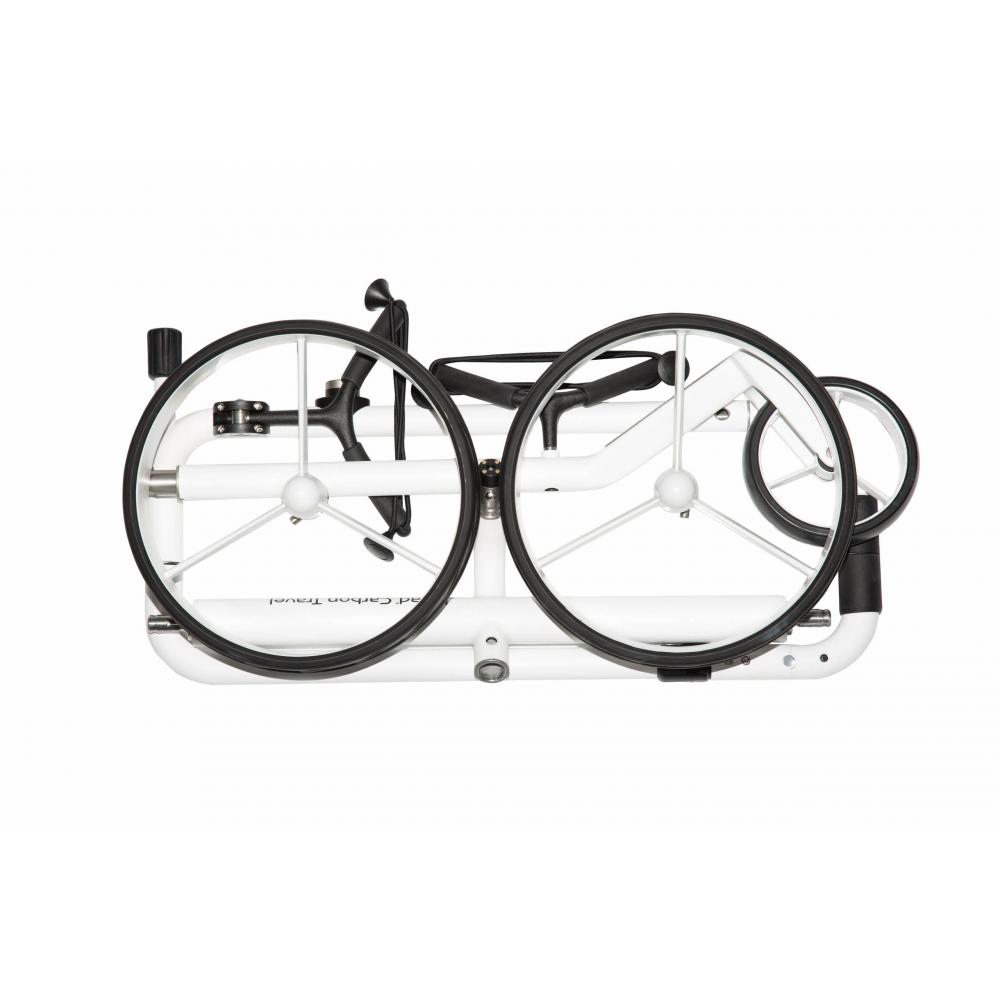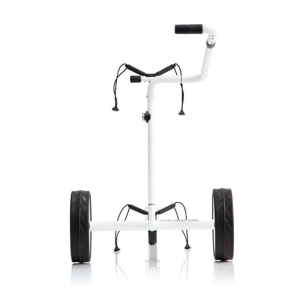 Der Hightech Carbonfaser-Caddy von JuCad, mit höherer Zugfestigkeit und Gewichtsreduzierung in mattweißer 3K-Optik, setzt auf extreme Leichtigkeit und höchst innovative Technologien. Jedes Rahmenteil des Bianco SV (Superveloce) wurde getreu dem Motto „Design to Weight“ entwickelt: so wenig Gewicht wie möglich bei maximal möglicher Belastung. Der JuCad Carbon Travel Bianco SV 3.0 erreicht ein Mini-Packmaß von nur 65x35x15cm und ist der ideale Reisebegleiter. Er lässt sich samt Golfbag ins Travelcover packen und Sie reisen mit nur einem Gepäckstück.