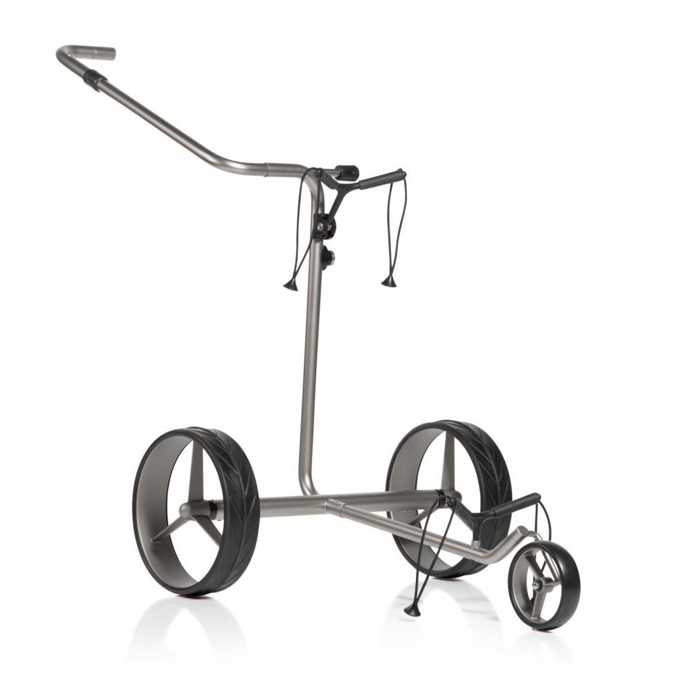 Der komfortable Caddy mit nur einer Steckverbindung und dem besonders flachen Packmaß von 65x60x10cm passt samt Zubehör in fast jeden Sportwagen-Kofferraum. Das intelligente Technikpaket sorgt für weiteren Komfort und beinhaltet leise Brushless Motoren mit einer beidseitigen elektronischen Parkbremse für sicheren Halt auf steilstem Gelände, Slope Balance Control (SBC®) für optimalen Hangausgleich sowie Magnetstecker und eine integrierte Ladestandsanzeige.