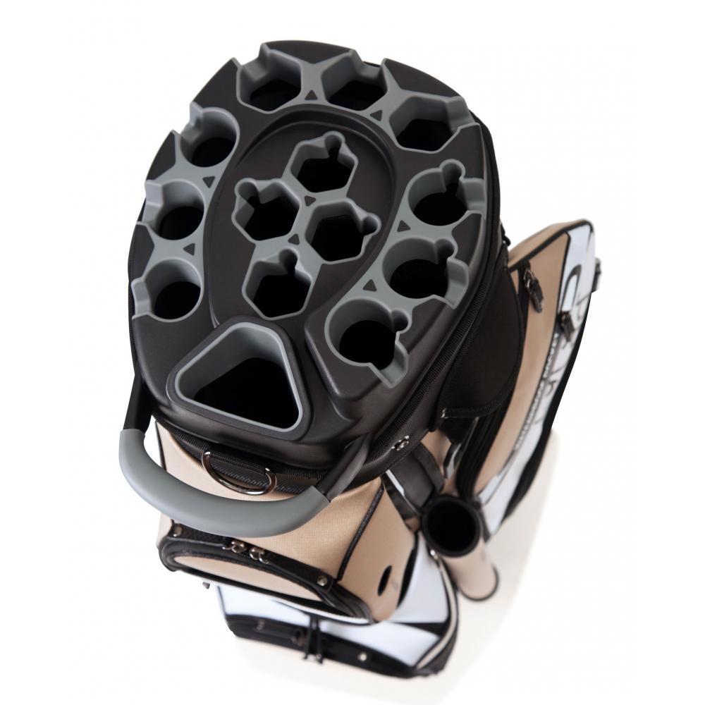 Achtung: das Bag ist nicht wasserdicht! Es besteht aus wasserabweisendem Material, d.h. ein kurzer Schauer oder leichter Sprühregen machen dem Bag nichts aus - das Bag ist jedoch nicht zum ungeschützten Einsatz bei starkem oder anhaltendem Regen oder Schneefall geeignet! - 14-fache Schlägereinteilung mit fester Schlägerkopfführung für die Eisen
