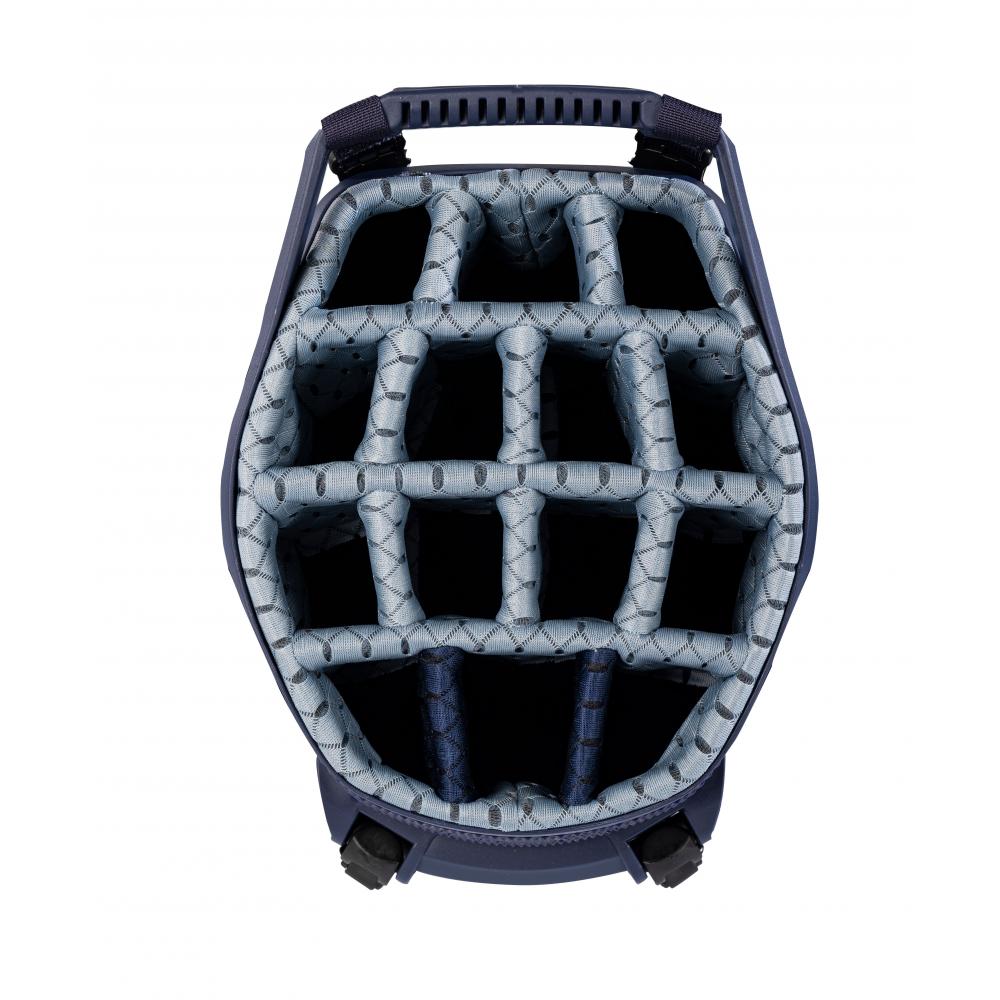 - 2-in-1: Die VLO-Technologie präsentiert die perfekte Weiterentwicklung einer Golfbag hin zu einem Hybridbag, d.h. Standbag und Cartbag in einer Tasche! Das Standsystem wurde dafür abgesenkt und neu ausbalanciert, sodass die obere Halterung des Golftrolleys die Tasche „greifen“ kann, ohne durch das Standsystem behindert zu werden
