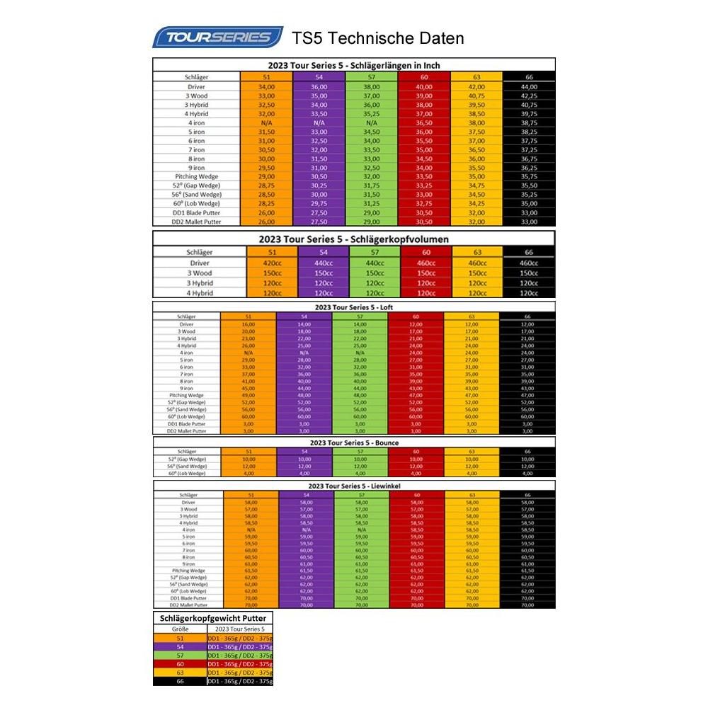 Technische Daten für SALE U.S. Kids Golf Tour Series 5 Einzelschläger TS60, 152-160cm