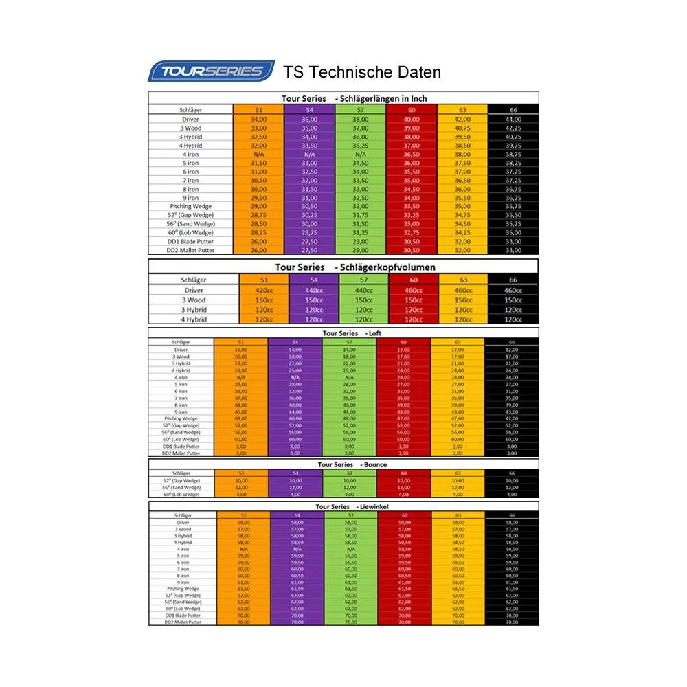 Die Schläger der Tour Series sind für fortgeschrittene Spieler mit einer höheren Schwunggeschwindigkeit konzipiert. Bitte sprechen Sie mit uns oder Ihrem Pro, wenn Sie nicht sicher sind, ob die Tour Series bereits für die Spielstärke Ihres Kindes geeignet ist.
